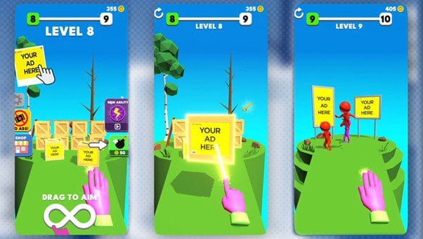 First out is Magic Finger 3D from Lucky Kat Studios. With an amazing seamless integration of Adverty’s In-Play™ ads which include billboards as well as ads players can interact with, Magic Finger 3D also introduces Adverty’s Seamless In-Menu™ format.